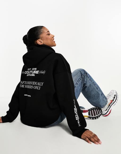 The Couture Club oversized hoodie in black with chest badging and back print part of a set Very well made.
