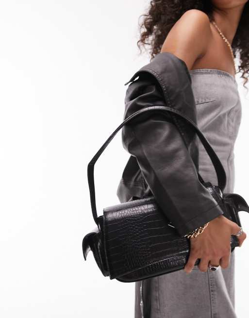 Topshop Salone faux croc multi pocket shoulder bag in black ASOS Very well made.